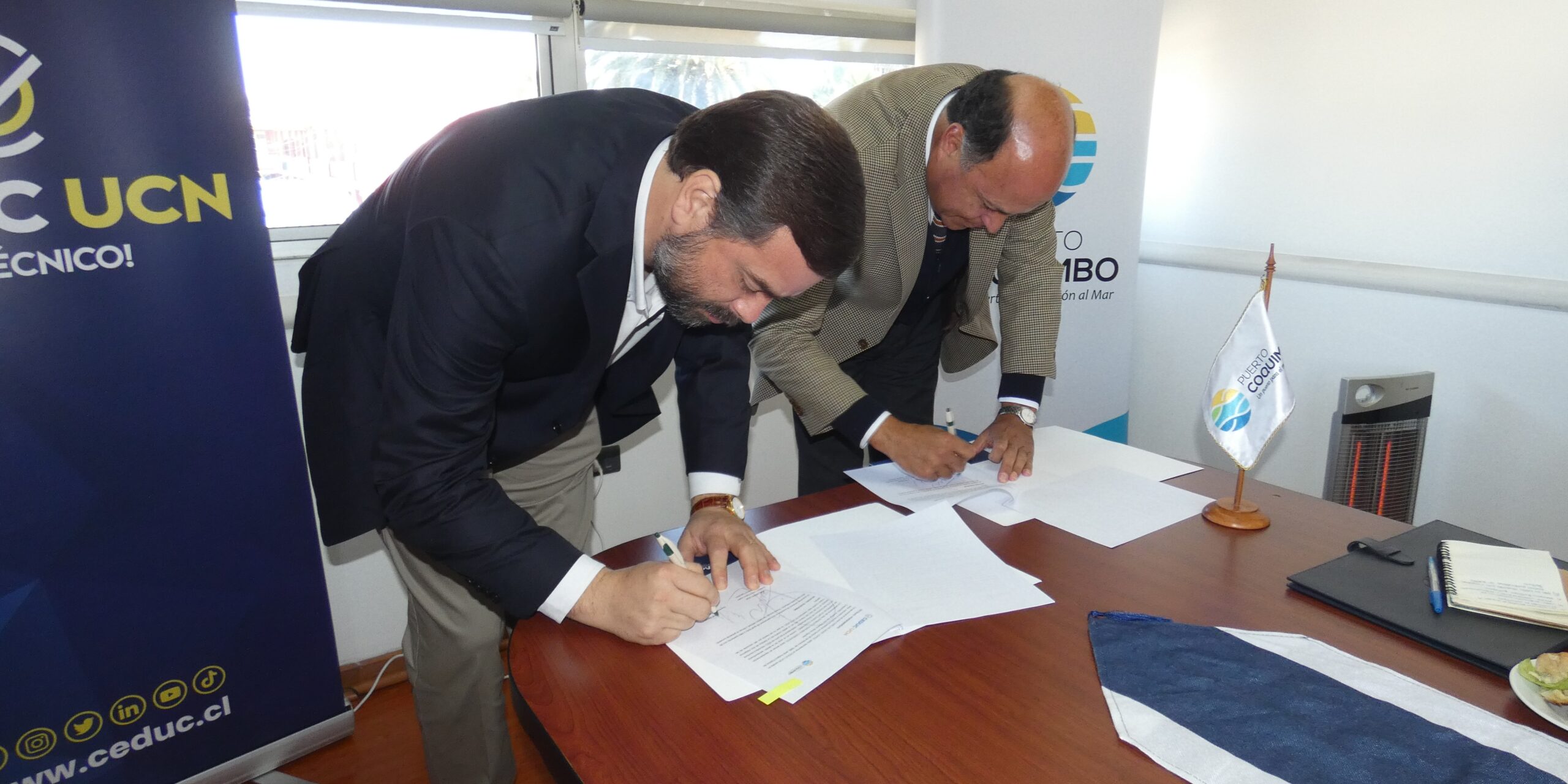El pasado miércoles 18 de junio, el centro de formación técnica de la Universidad Católica del Norte, Ceduc UCN, y la Empresa Portuaria Coquimbo, formalizaron un convenio de colaboración que permitirá acercar a estudiantes y docentes al rubro portuario, y a trabajadoras y trabajadores de la empresa capacitarse y certificar sus conocimientos; además de ejecutar acciones conjuntas para el intercambio de experiencias.