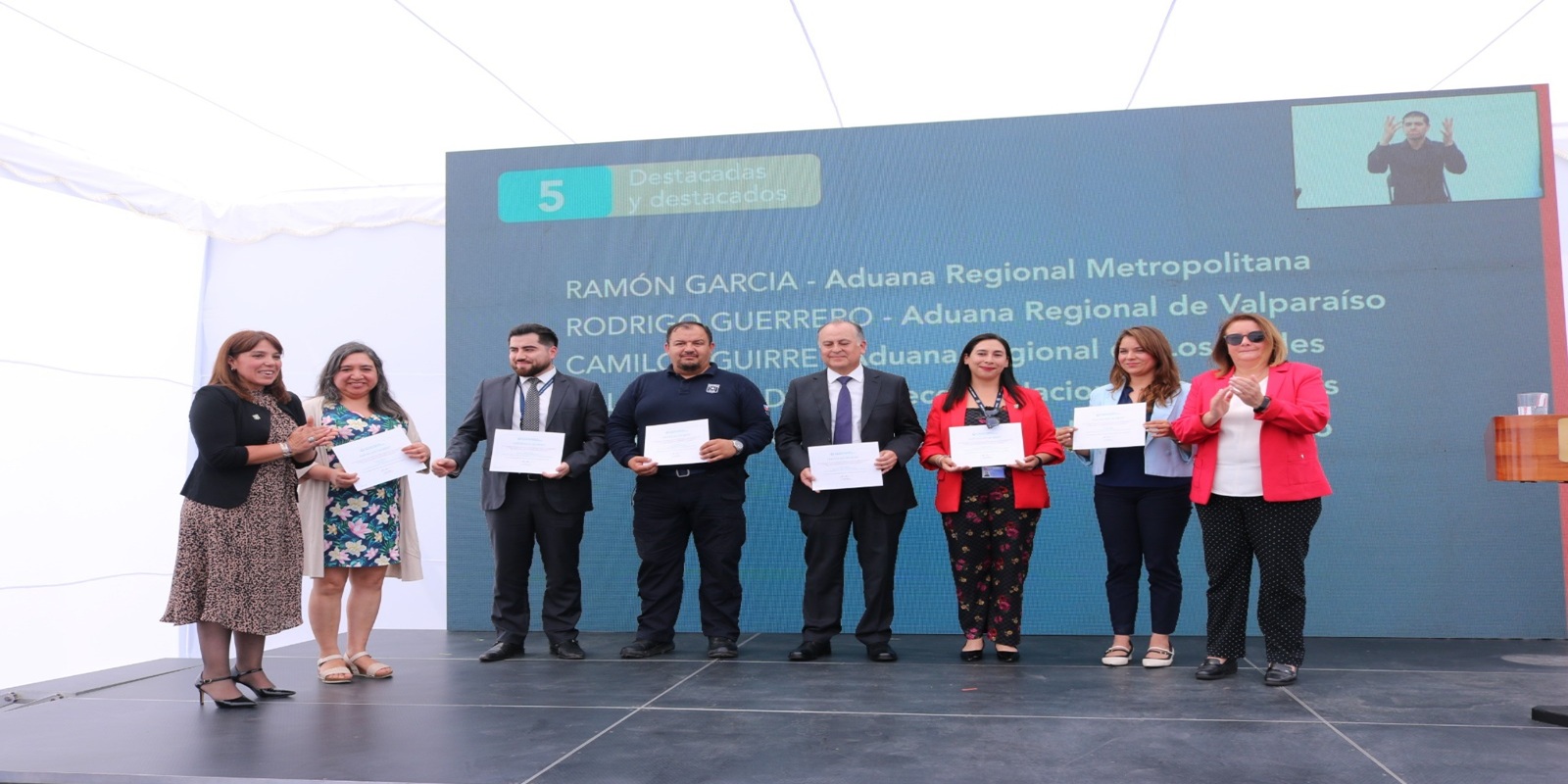 Además se reconoció el trabajo de 16 funcionarias y funcionarios de todo el país y 3 personas externas por aportar al trabajo del servicio: Nicole Kuppenheim, del Observatorio del Comercio Ilícito (OCI) de la Cámara Nacional de Comercio (CNC); Estefanny Artus, Coordinadora de Servicios del Ministerio de Hacienda; y Tamara Contreras, Presidenta de la Asociación Nacional de Funcionarios de Aduanas de Chile (Anfach).