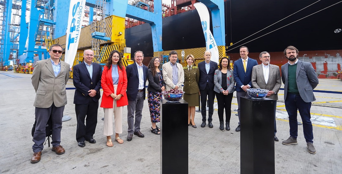 Con el objetivo de dar inicio a la temporada de exportaciones hortofrutícola 2022-2023, este martes 22 de noviembre se realizó un evento dentro del Terminal Pacífico Sur Valparaíso (TPS),que contó con la presencia del ministro de Agricultura, Esteban Valenzuela; la directora nacional (s) del SAG, Andrea Collao; el presidente de Asoex, Iván Marambio; el presidente de la Camport, Daniel Fernández y el presidente de la Empresa Portuaria de Valparaíso, Luis Eduardo Escobar, entre otros invitados.
