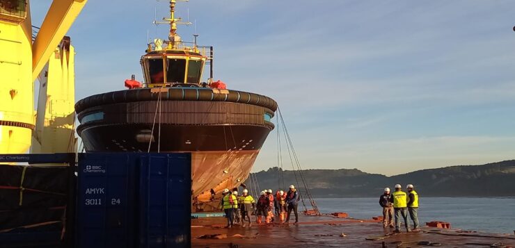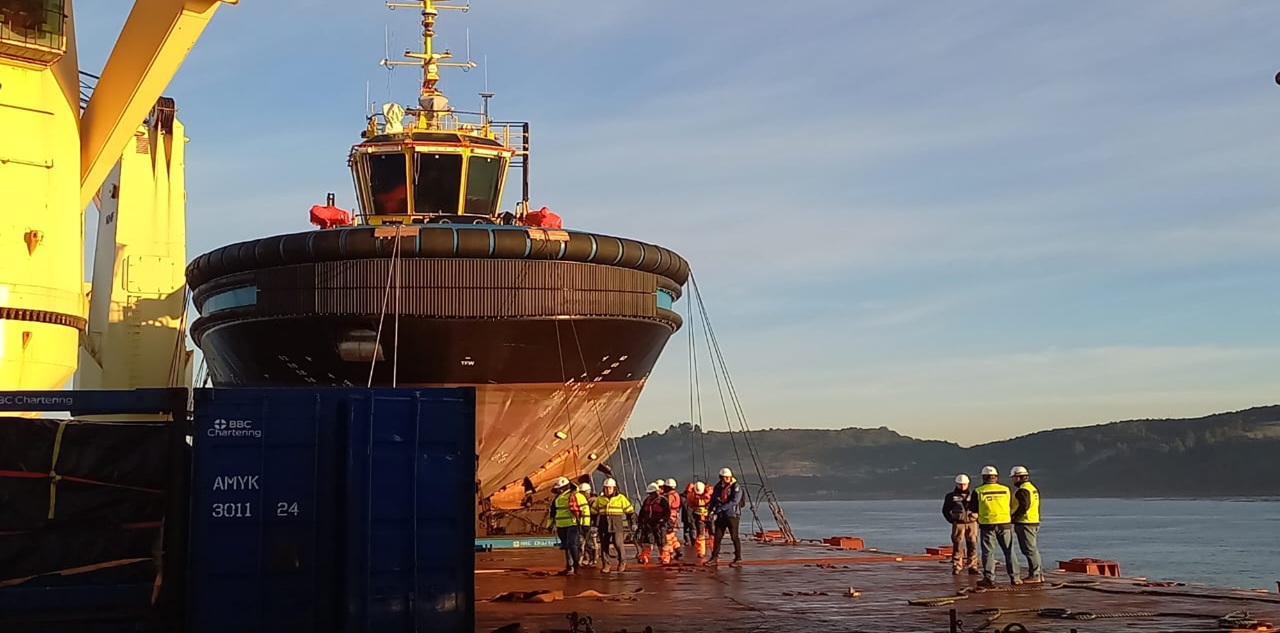 En una destacada operación logística, Ian Taylor, empresa del Grupo Empresas Taylor, coordinó exitosamente la descarga directa al agua de un remolcador eléctrico de 50 toneladas en el puerto de Puerto Montt, el que venía a bordo de una nave de BBC Chartering, una de las principales compañías de transporte de carga de proyectos a nivel mundial, representada en Chile por Ian Taylor.
