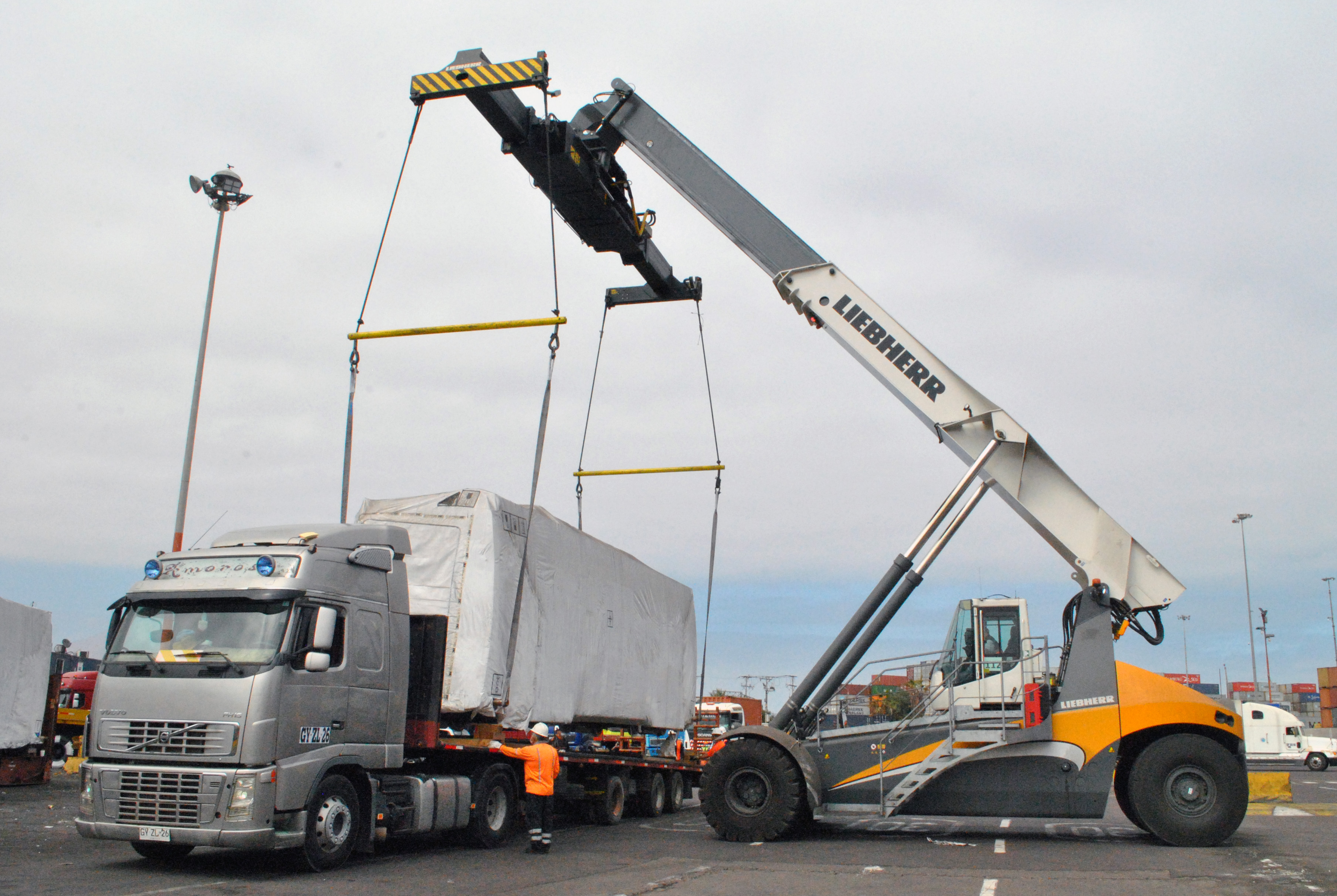 En una operación que se extendió por cerca de 7 horas, cada uno de los vagones que se encontraba en contenedores flat rack fueron posicionados sobre plataformas de camiones para trasladarlos por vía terrestre al vecino país. Los vagones pesan entre 14 y 17 toneladas y fueron importados desde Europa.