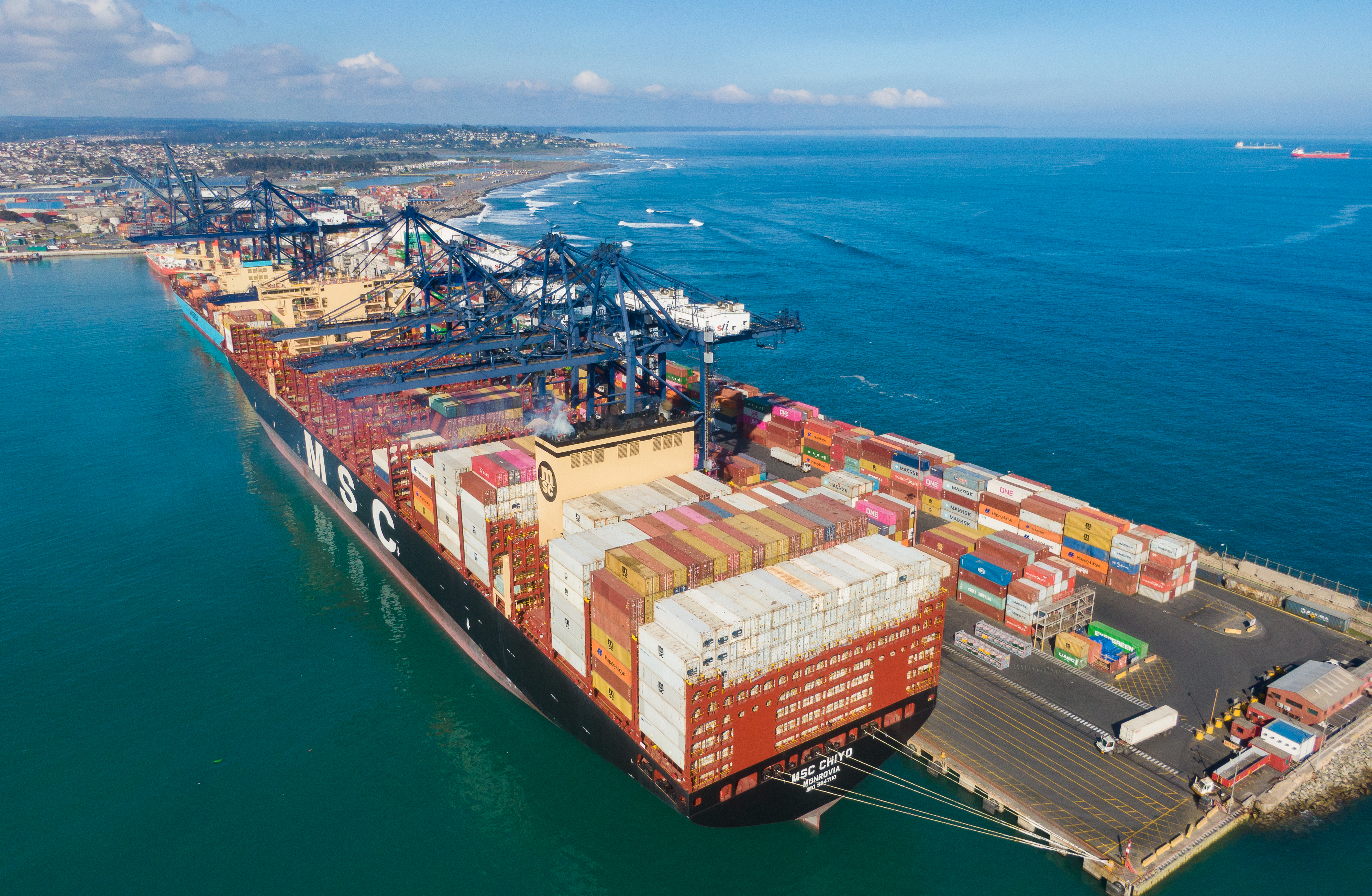 En agosto, el MSC Chiyo con 366 metros de eslora y 51 de manga se transformó en el buque de mayor capacidad en arribar a Chile, siendo atendido por STI.